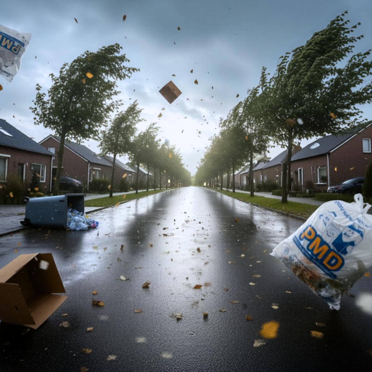 Op dit moment kan de stevige wind buiten zorgen voor overlast. De harde wind kan een paar dagen aanhouden en kan overlast veroorzaken bij het aanbieden en inzamelen van afval. Zet daarom liever geen lichte containers buiten, bind PMD-zakken aan elkaar vast en zorg dat papier niet kan wegwaaien. Op doorgaande wegen leggen wij containers zoveel mogelijk plat na inzameling.